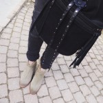 and uncle boots Molly . Holding a black suede bag with frills everything from Zadig!